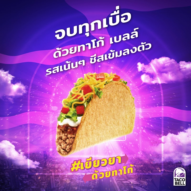“Our first Taco Swap Campaign is ‘Lunchtime Therapy’ – during lunchtime, boring plain meals won’t stand a chance as consumers can spice up for flavorful tacos at Taco Bell restaurants. New Taco Swap Campaign will be launched almost every month throughout this year. We expect that Taco Bell brand will become one of well-known brand among consumers in Thailand in a near future.”