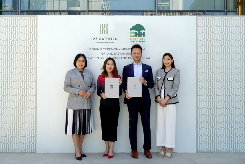 This collaboration consists of providing teleconsultation service to 125 Sathorn residents and their family members until 31 December 2026 and special privilege on the ambulance call service fee until 31 December 2029. In addition, BNH will help PMT Property set up the health emergency plan for serving residents as well as conduct a session of intermediate first aid and life support training for 125 Sathorn concierge team.