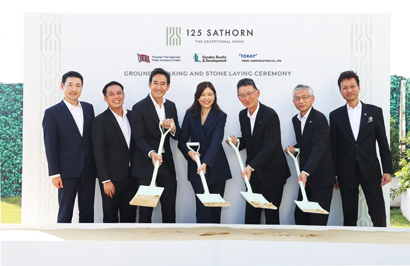 PMT Property Company Limited, led by Ms. Ausana Mahagitsiri (centre), Chief Executive Officer, along with Mr. Kenichi Fujino (3rd from right), President of Kanden Realty & Development (KRD) and Mr. Kamolsut Dabbaransi (3rd from left), Senior Executive Vice President for Food and Beverage Group, Thoresen Thai Agency Plc) team held the groundbreaking and stone Laying ceremony for the new 125 Sathorn Condominium project here in Sathorn.