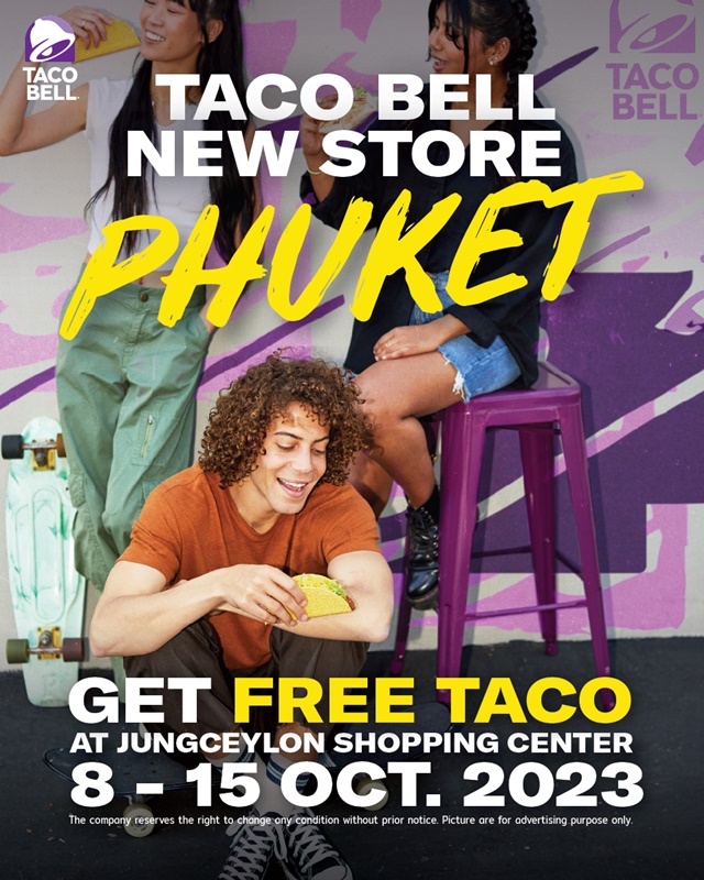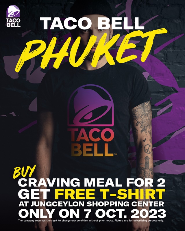 Taco Bell, the unique and famous Mexican-style restaurant, officially opens at the 1st floor, Garden Zone, Jungceylon Shopping Center, Patong, Phuket, from 11 am to 10 pm daily. To find more information about the promotional campaign, please visit Taco Bell Facebook: facebook.com/TacoBellTH, IG: @TacoBellTH, X: @Tacobellth, LINE: @TacoBellTH and TikTok: @Tacobellthailand.