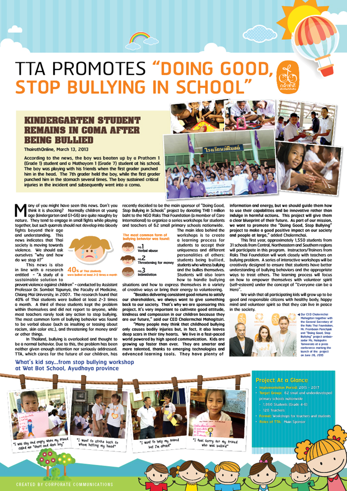 TTA PROMOTES "DOING GOOD, STOP BULLYING IN SCHOOL"