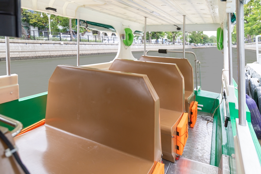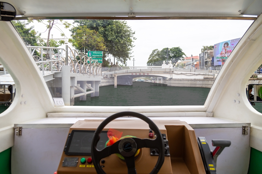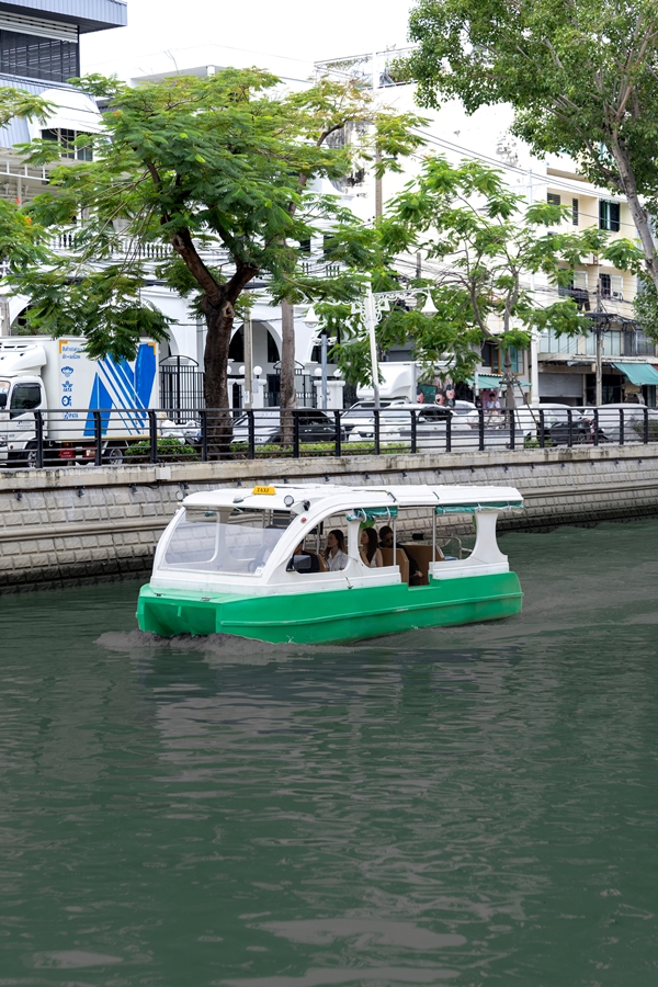 เรือแท็กซี่ไฟฟ้าที่นำมาใช้ทดสอบได้รับการพัฒนาขึ้นโดยฝีมือคนไทย ใช้วัสดุที่สามารถรีไซเคิลได้และขับเคลื่อนด้วยพลังงานสะอาด 100% ลดการพึ่งพาน้ำมันเชื้อเพลิง และช่วยลดมลพิษทางน้ำและเสียง สร้างบรรยากาศการเดินทางที่ เงียบ สะอาด และปลอดภัย ตอบโจทย์การเดินทางในเมืองยุคใหม่ที่ใส่ใจสิ่งแวดล้อม