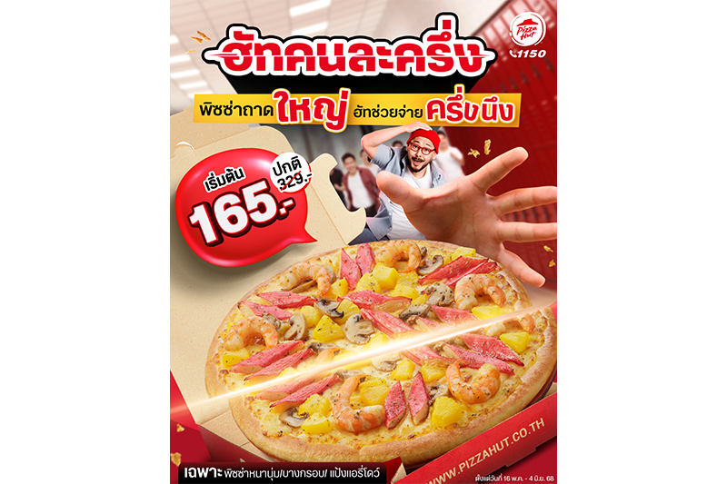 คุ้มต่อเนื่องไม่มีพัก! พิซซ่า ฮัท “ฮัทคนละครึ่ง” ถาดใหญ่จ่ายแค่ครึ่งเดียว เริ่มต้นแค่ 165 บาท