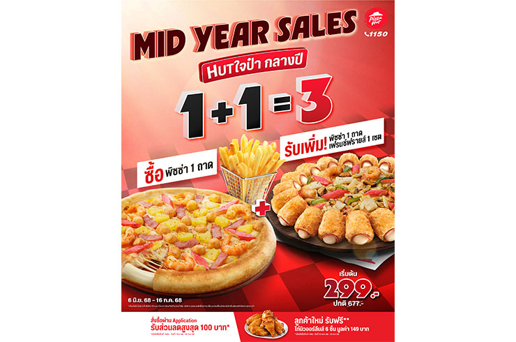 พิซซ่า ฮัท จัดโปรฯ ‘HUT MID YEAR SALES’ 1 + 1 = 3