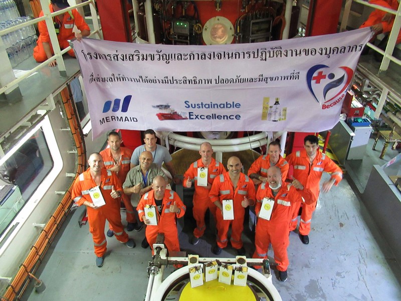 กรุงเทพมหานคร, 8 กรกฎาคม 2565 – บริษัท เมอร์เมด มาริไทม์ จำกัด (มหาชน) หรือเมอร์เมดฯ ซึ่งเป็นบริษัทย่อยของบริษัท โทรีเซนไทย เอเยนต์ซีส์ จำกัด (มหาชน) หรือ TTA นำโดยคุณเฉลิมชัย มหากิจศิริ ประธานเจ้าหน้าที่บริหาร ได้แสดงความห่วงใยและใส่ใจในสุขอนามัยและความปลอดภัยของพนักงานทุกคน โดยเฉพาะอย่างยิ่งผู้ที่ปฏิบัติงานด้านวิศวกรรมใต้น้ำซึ่งจำเป็นต้องมีร่างกายที่สมบูรณ์แข็งแรง จึงได้มอบผลิตภัณฑ์ P80 Natural Essence ซึ่งเป็นนวัตกรรมสมุนไพรสกัดจากลำไย 100% ให้แก่ทีมวิศวกรรมใต้น้ำ เพื่อดูแลสุขภาพให้แข็งแรง เสริมภูมิคุ้มกันให้ร่างกายในระหว่างออกปฏิบัติหน้าที่ ตลอดจนมีขวัญและกำลังใจที่ดีขณะปฏิบัติงาน